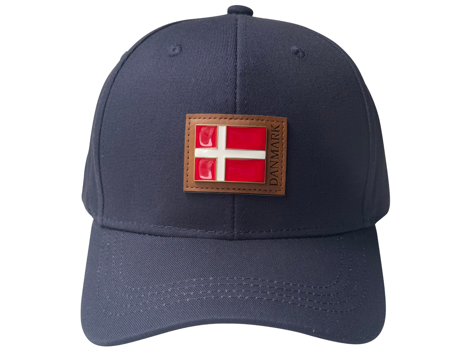 Kasket Navy m/Firkantet Læderpatch og metal DK Flag