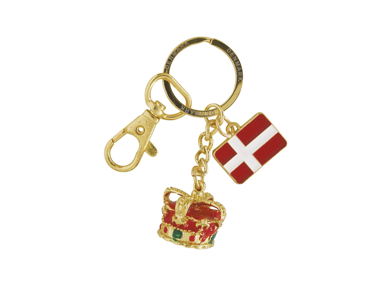 Nøglering Krone Og Flag Guld