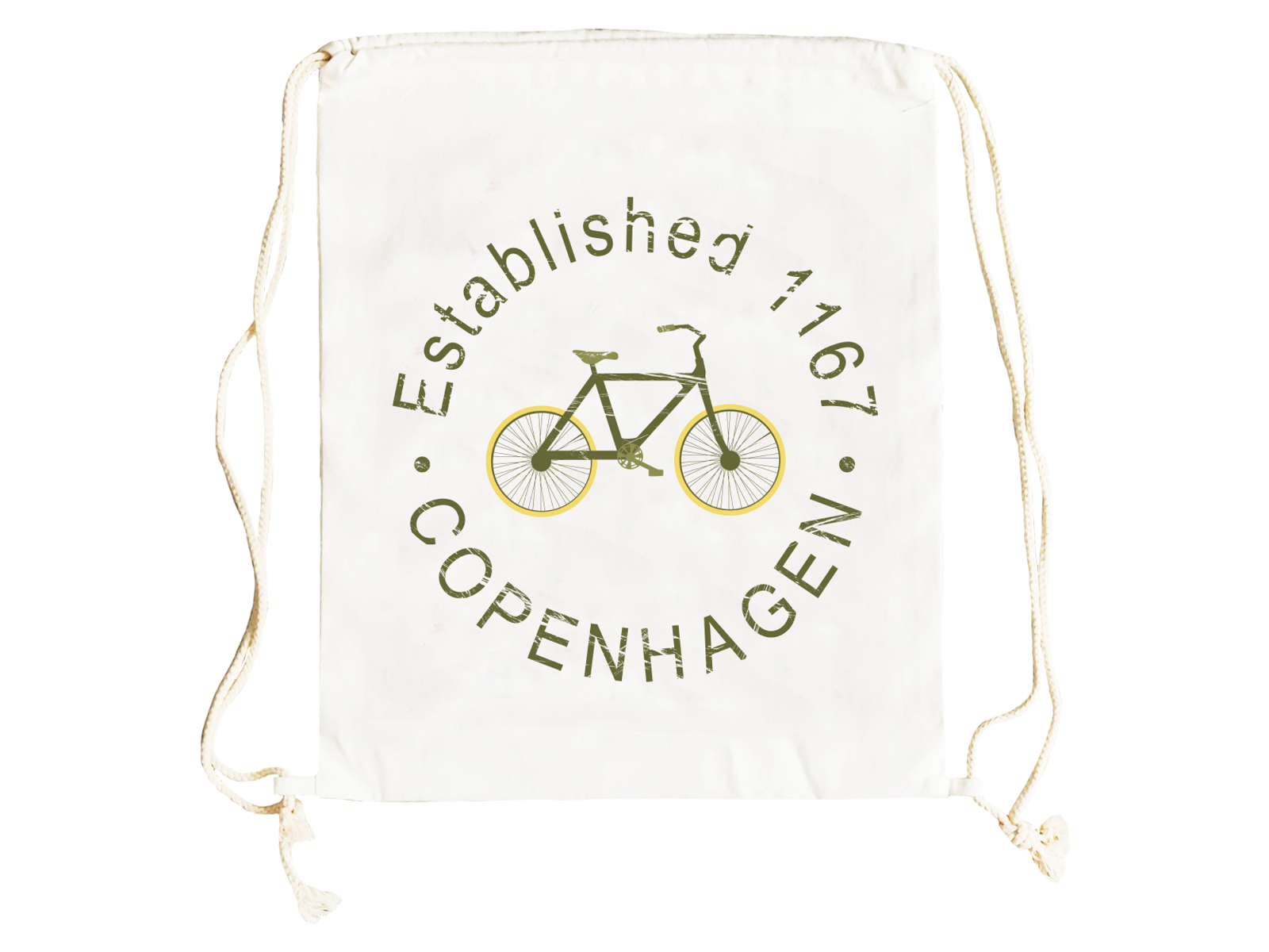 En funktionel og visuelt appellerende gym bag til butikker, der ønsker at tilbyde moderne, praktiske produkter med dansk identitet. Tasken er dekoreret med et simpelt cykel-motiv – et af Københavns mest ikoniske elementer – og er fremstillet i let, slidstærkt materiale med snørelukning. Bomuldet er GRS-certificeret, hvilket betyder, at det er genanvendt. Perfekt til gavebutikker, turistattraktioner og livsstilsbutikker med fokus på dansk kultur og urban funktionalitet.