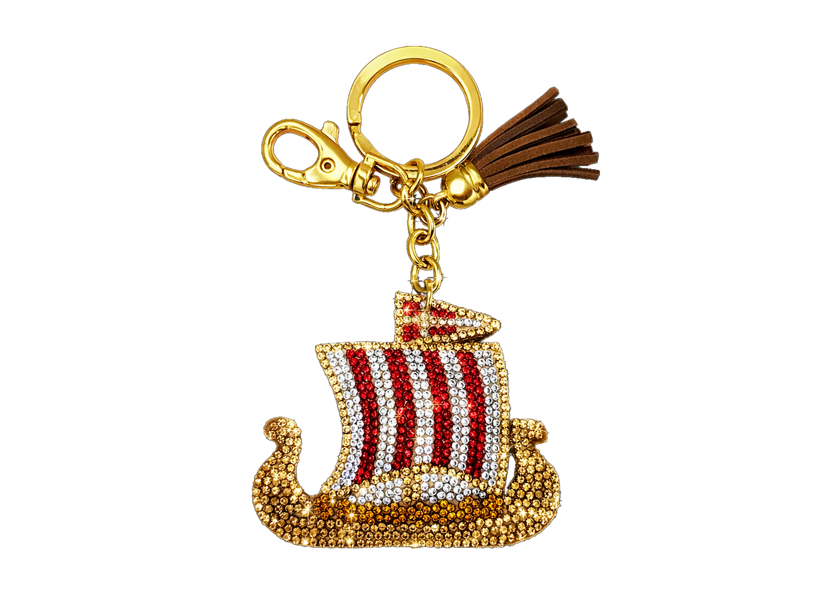 Nøglering, Vikingeskib Læder Rhinestones