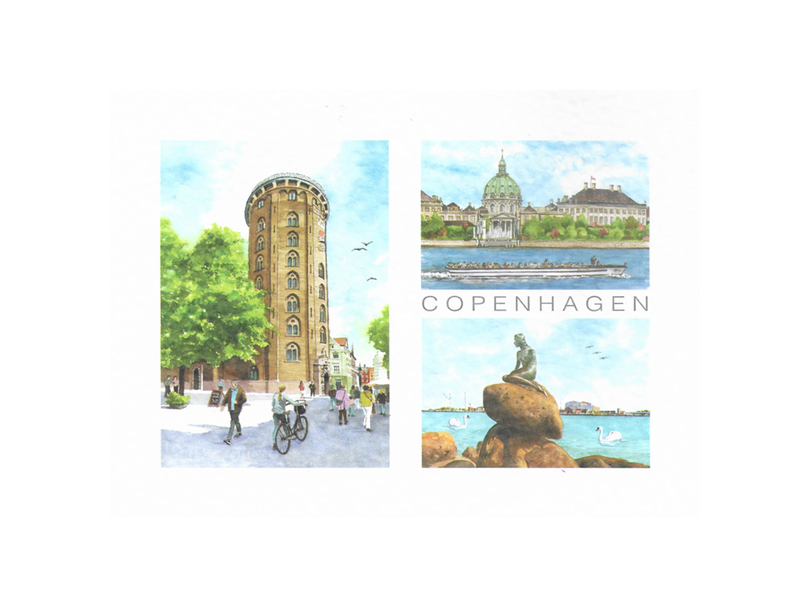 Postkort, Rundetårn/Marmorkirken/Havfrue 16,5 x 12 cm.