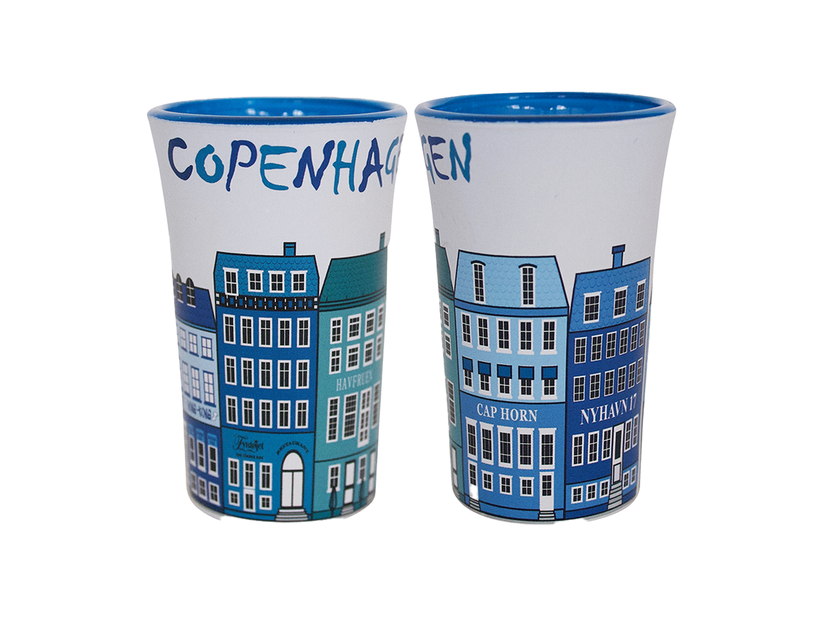 Shotglas, Nyhavn Hvid/Blå 2 Stk.