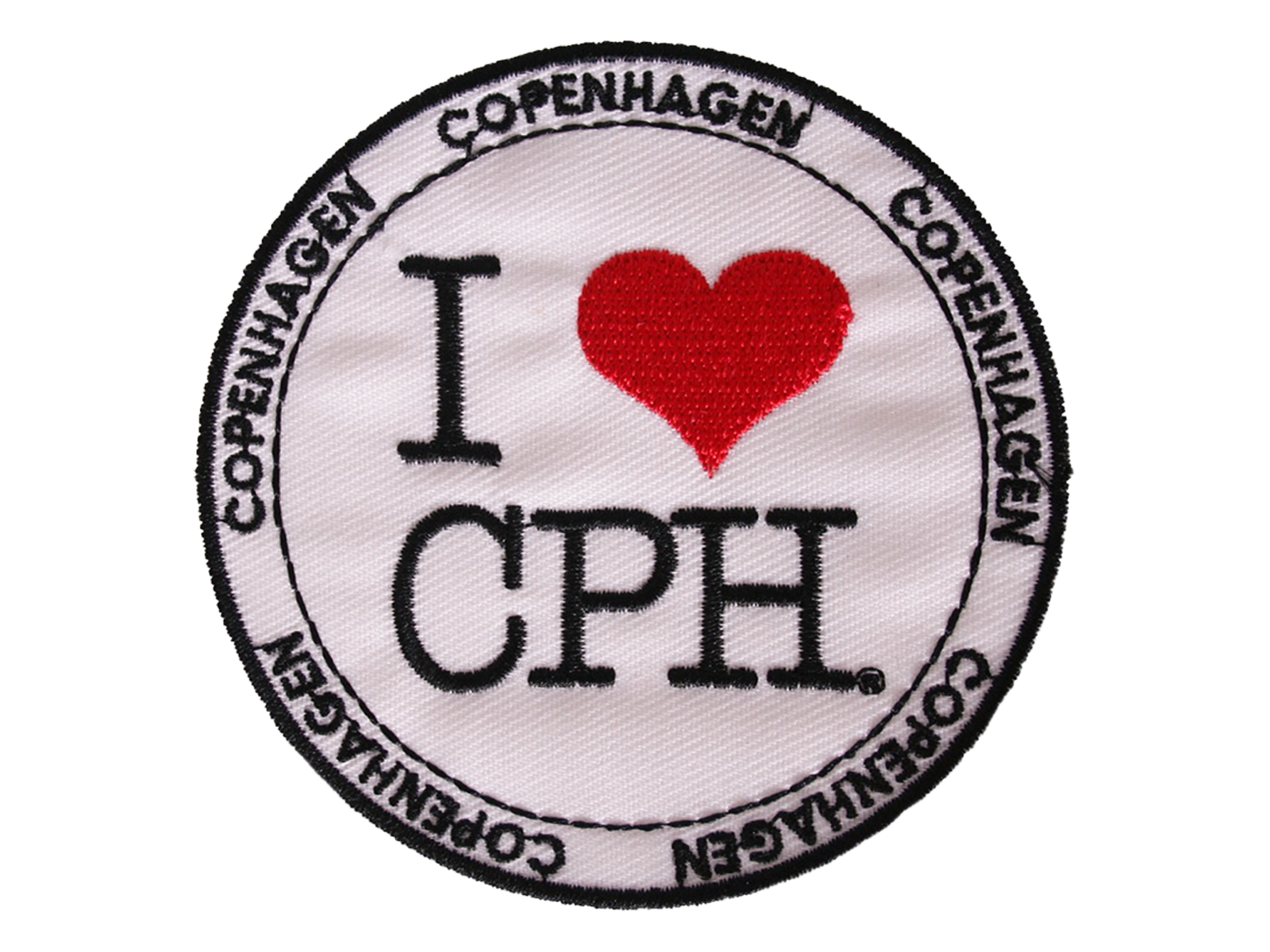 Broderet stofmærke med stryge-på bagside. Stofmærket er 8 cm i diameteren.