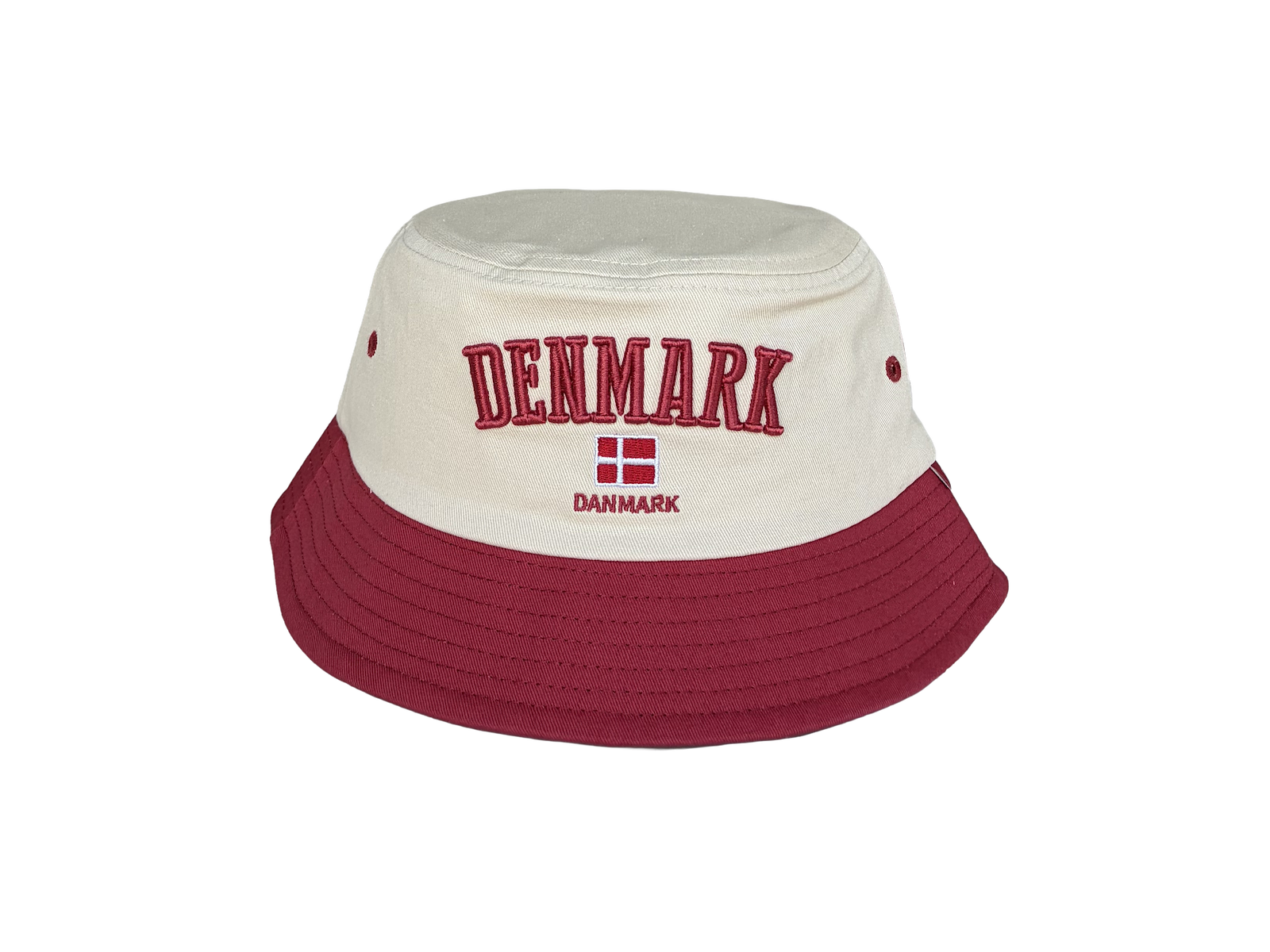 Bucket Hat DK Hvid Vinrød